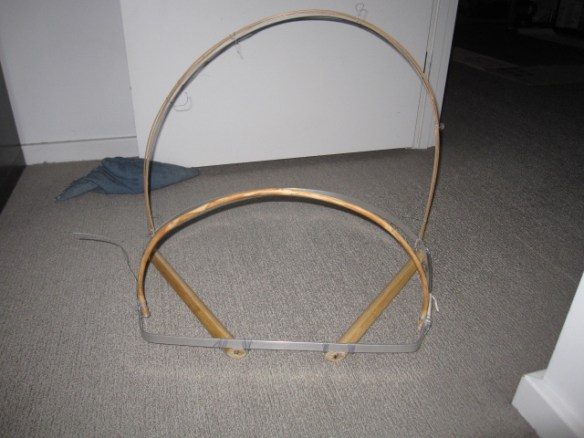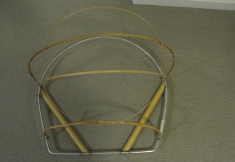 For the second shorter one, I ended up using a rattan/ cane ring which I found at an arts and c rafts store (probably used as a base for other arts projects) separated the join and stretched it out to form a large curve. The length was perfectly matched to the original.