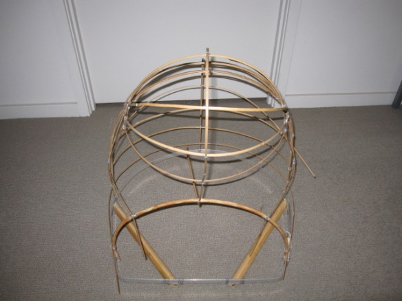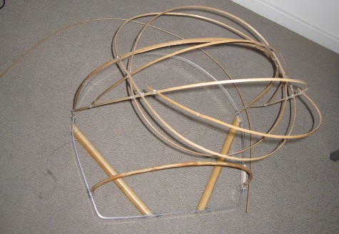 From this it was a bit tedious measuring each bamboo strip before tying it on to the main supporting strips to start forming the main body.