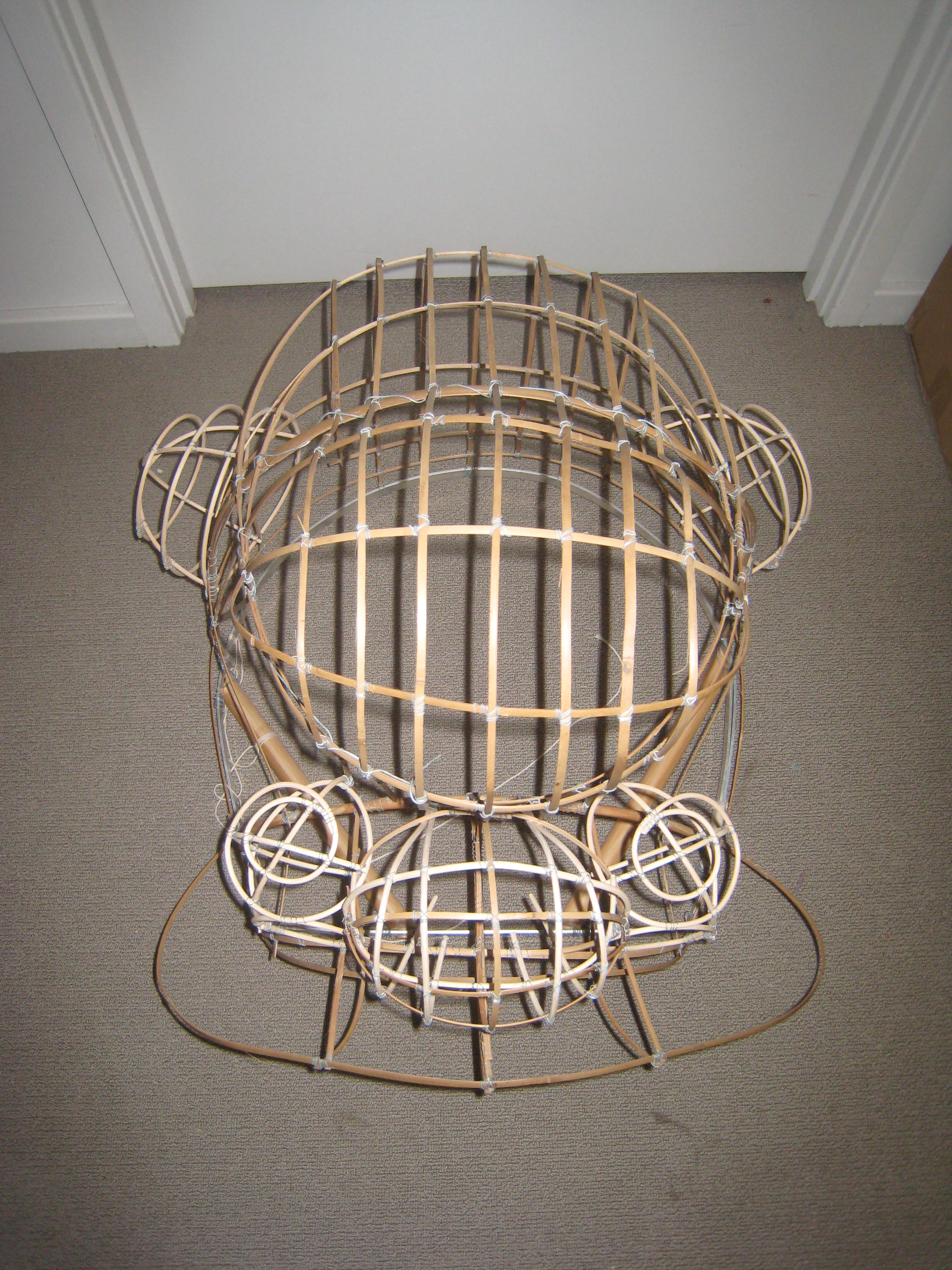 This was one of the more fun parts to complete. I used a combination of bamboo strips and rattan for this area, and it turned out quite well. Because the joints were much closer together, the nose felt quite solid and strong and it gave the lion an identifiable feature. One step closer to becoming a lion!!!