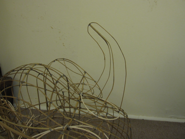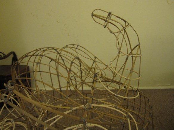 Again, I deviated from my model with the horn. It was just too difficult to get exact measurements. I decided to experiment using rattan and sticky tape to make quick and easy models of various sizes and shapes. In the end, I used a combination of rattan and bamboo to make the horn.