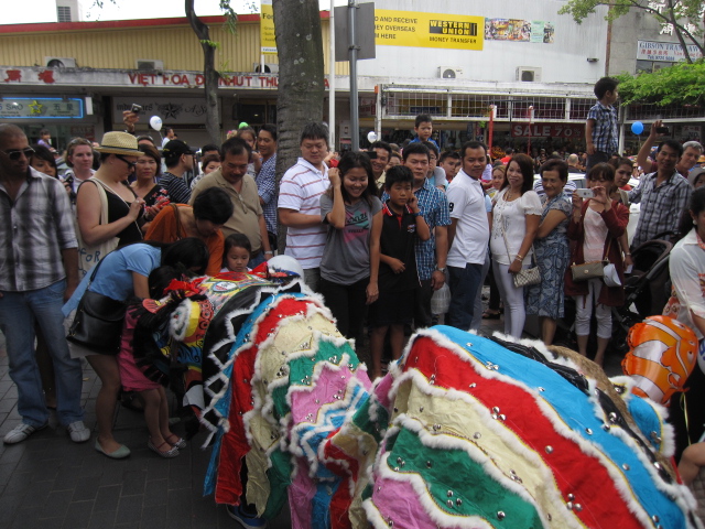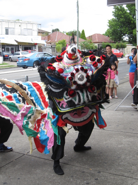 I think the reception of the lion was well received. Many people were commenting at how fierce the lion looked and many enjoyed the colourful artwork on the top of the lion as well as its back. The tail, in all its colourful 11ft glory was also well received as a multicoloured tail has not been seen in Cabramatta in a long time.