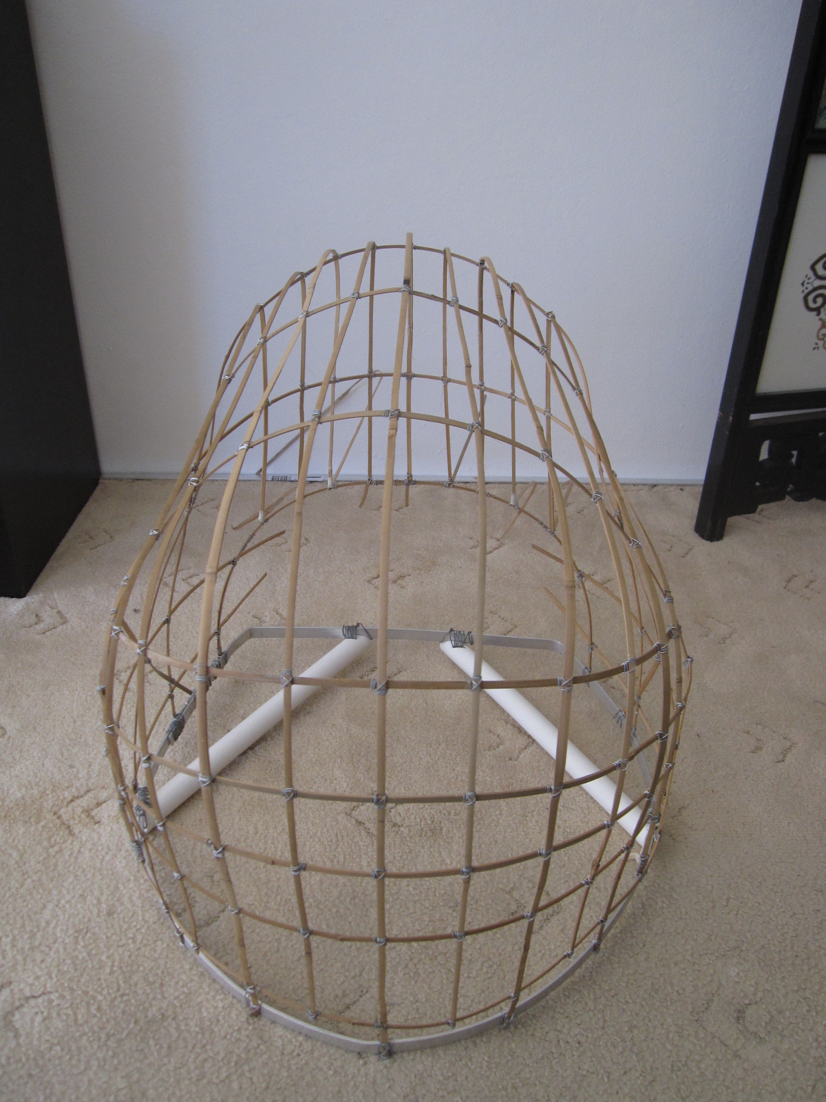Initially, I was hoping to have the whole head made from bamboo, but in the end, I decided to incorporate rattan cane into it. The rattan is just so easy to turn into circles and when there are enough joints, it holds fairly firmly.