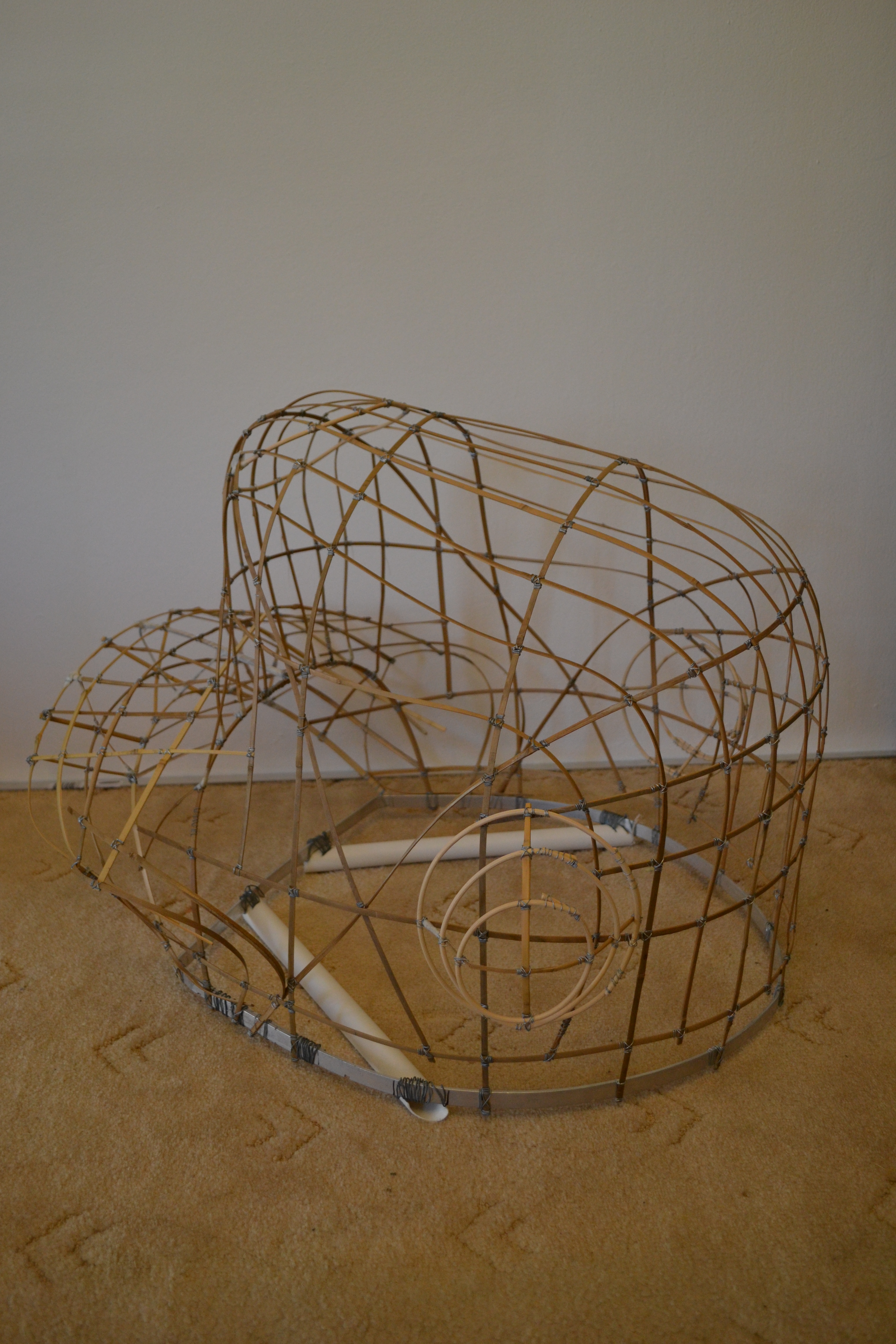 Initially, I was hoping to have the whole head made from bamboo, but in the end, I decided to incorporate rattan cane into it. The rattan is just so easy to turn into circles and when there are enough joints, it holds fairly firmly.