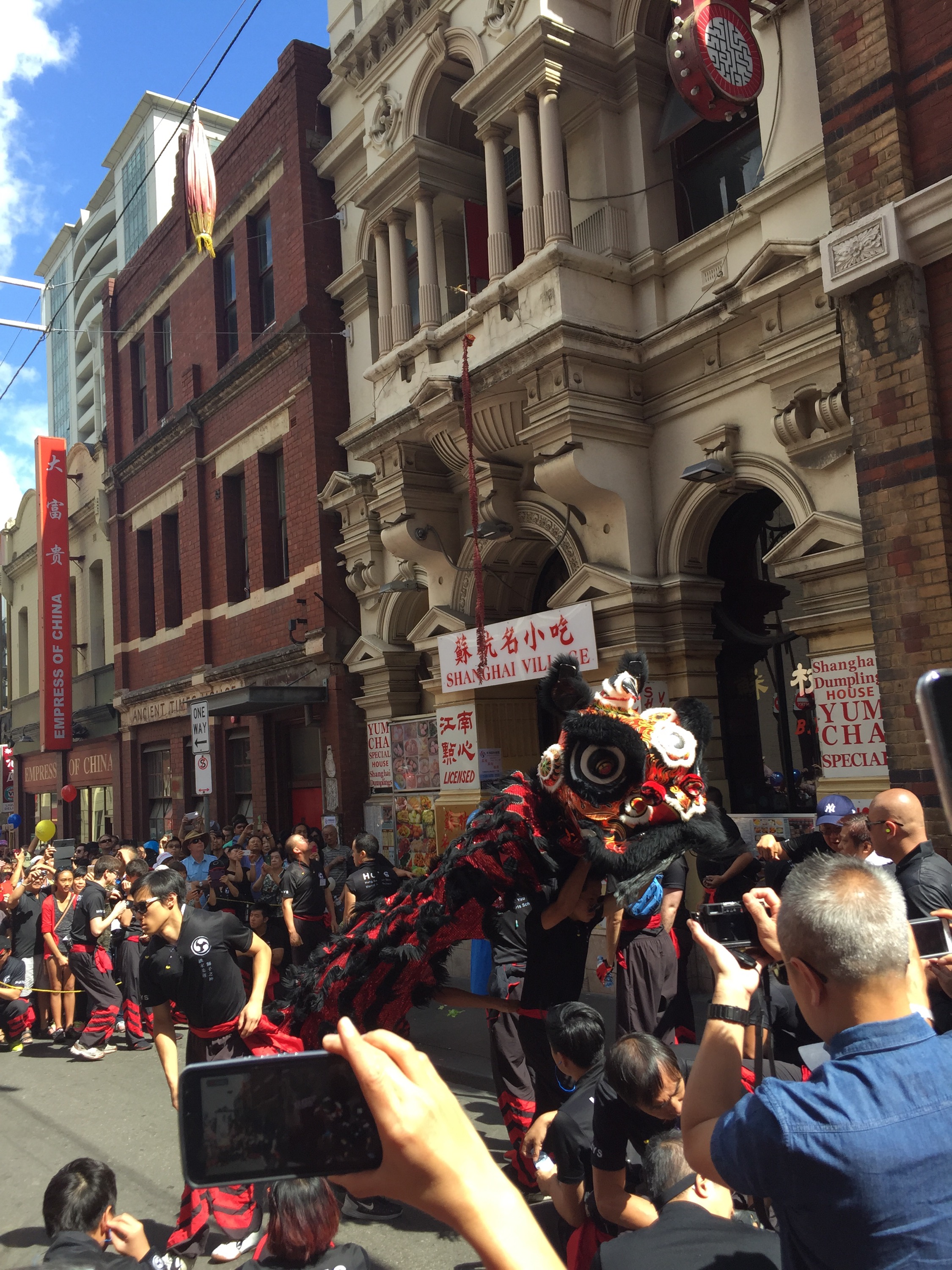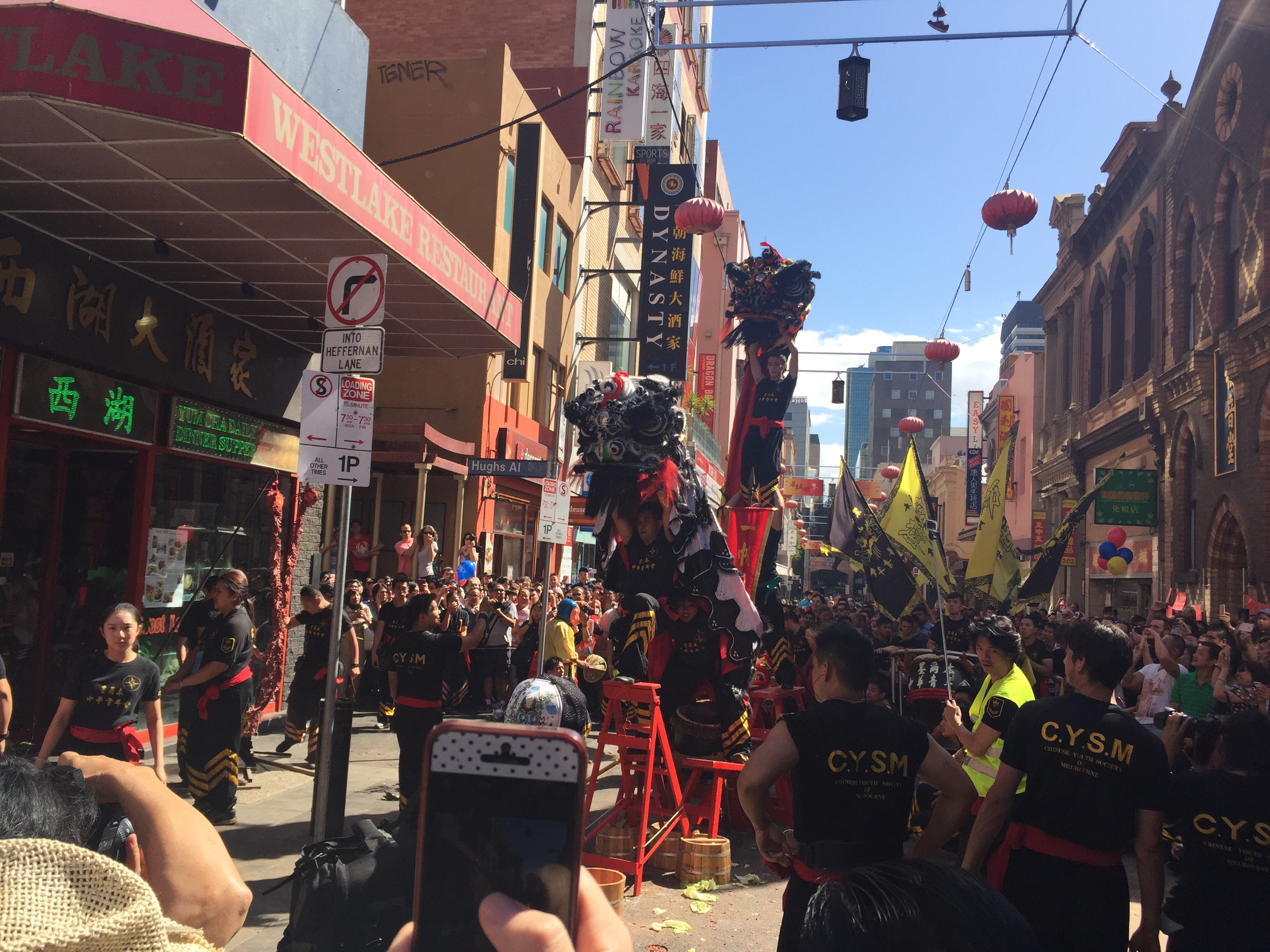 This year, I spent a lonely Chinese New Year in a little town in country NSW called Tamworth. To make up for it, the weekend that just past saw me head down to Melbourne for the first time to see what the Melbourne guys have to offer in its Chinatown. Now I’ve seen heaps of video clips of the various Melbourne teams and am can’t familiar with who dances where and I knew to expect the Chinese Youth Society Melbourne (CYSM), Hung Gar Yau Shu (HGYS), Chinese Masonic Society (CMS) and the Dai Loong Association to do a number of performances in Chinatown but what I saw blew me away with excitement.