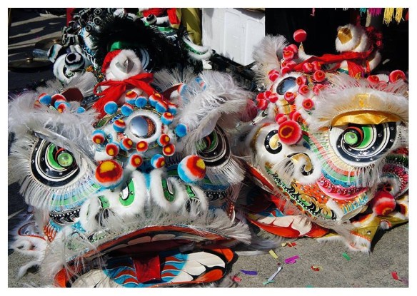 I’ve taken this image off the archives of the Chinese Lion Dancers Facebook page. They’re examples of Ho Sing’s bak wan lions and show their “premium” bristle fur. Note how they’re more sparse and allow you to see more of the paintwork.