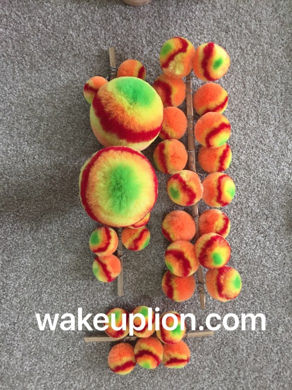 These included the pom-poms, eyes, beard and fur, the mirror etc. I have previously sourced my embellishments through various people I’ve met along the way and from being creative with making my own things like the Pom poms. But for those of you who have tried sourcing their own embellishments, there aren’t so many English speaking websites/ shops/ eBay that sell “lion” parts. Type in anything and you’d invariable hit up huge cheerleader pom-poms or lion mascot dress up suits and forget about getting the eyes or bristle fur. Even a search on taobao (Chinese eBay) proved difficult. As for making your own Pom poms, it’s hard! And they just don’t look as good as the Chinese ones that are made specifically for lion heads or Chinese opera! The bristle fur is a little “easier” to achieve but time consuming to make and if you’re just a social lion head maker, it may not be worth the time and effort.