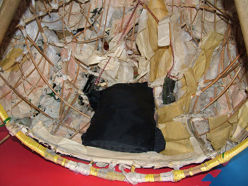 By the time I joined the club, the lion’s internal bamboo structure was all but broken and the weight of all the added medical tape turned the lion into a squashed mess. So it was hung up on the wall unused for a few years.
