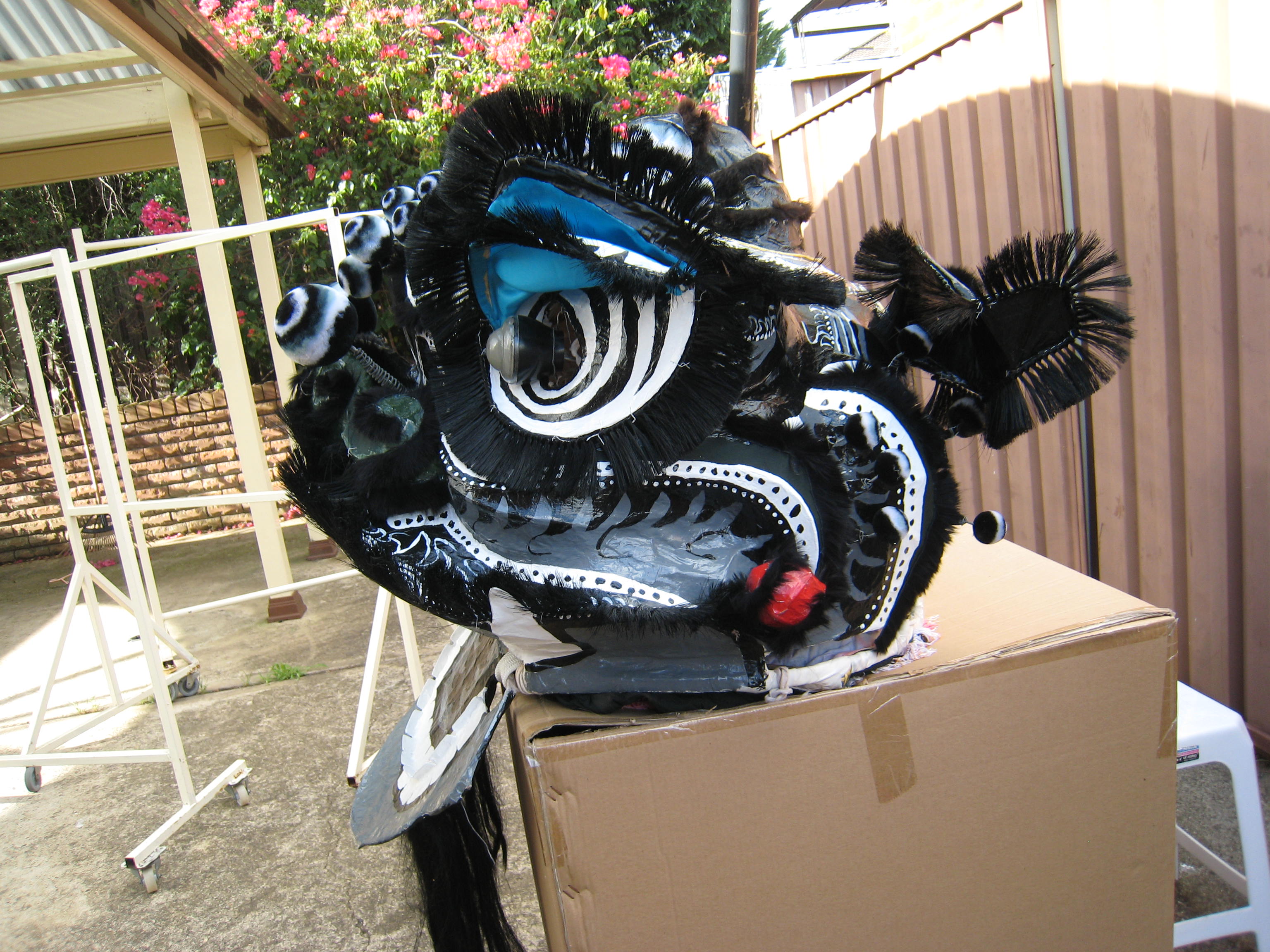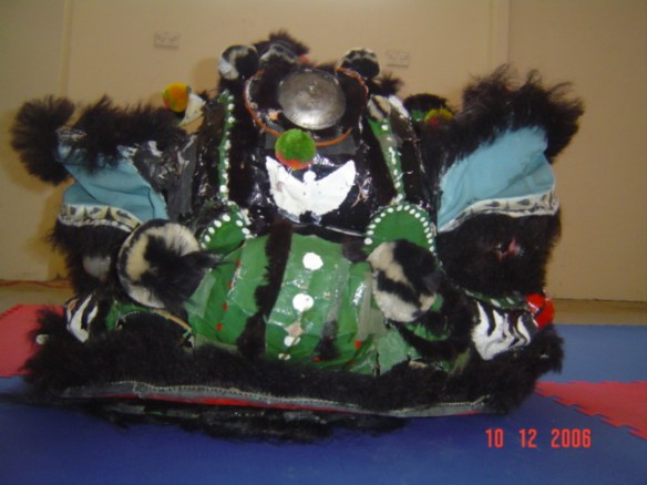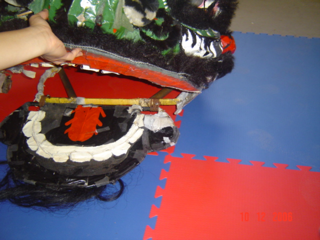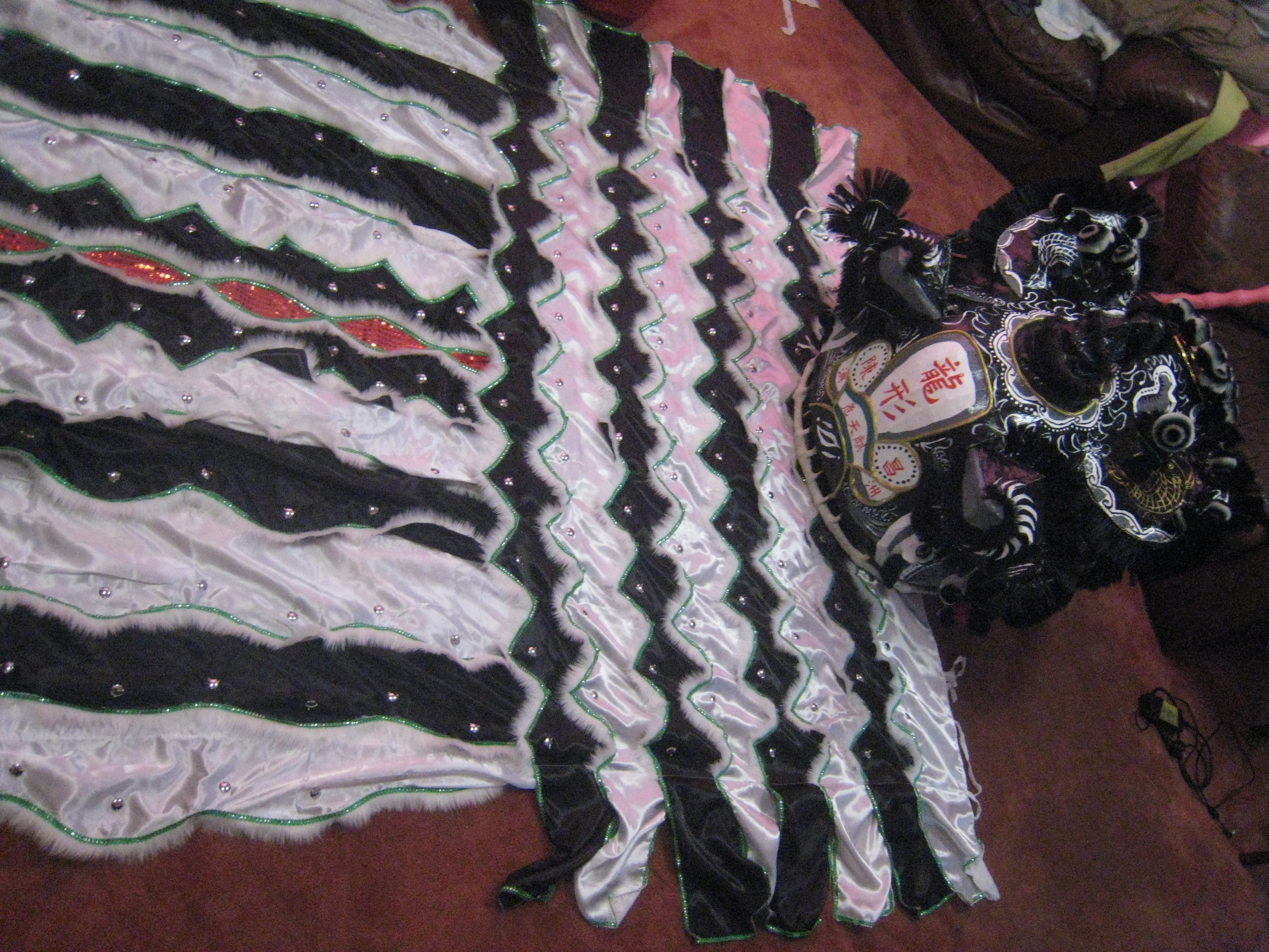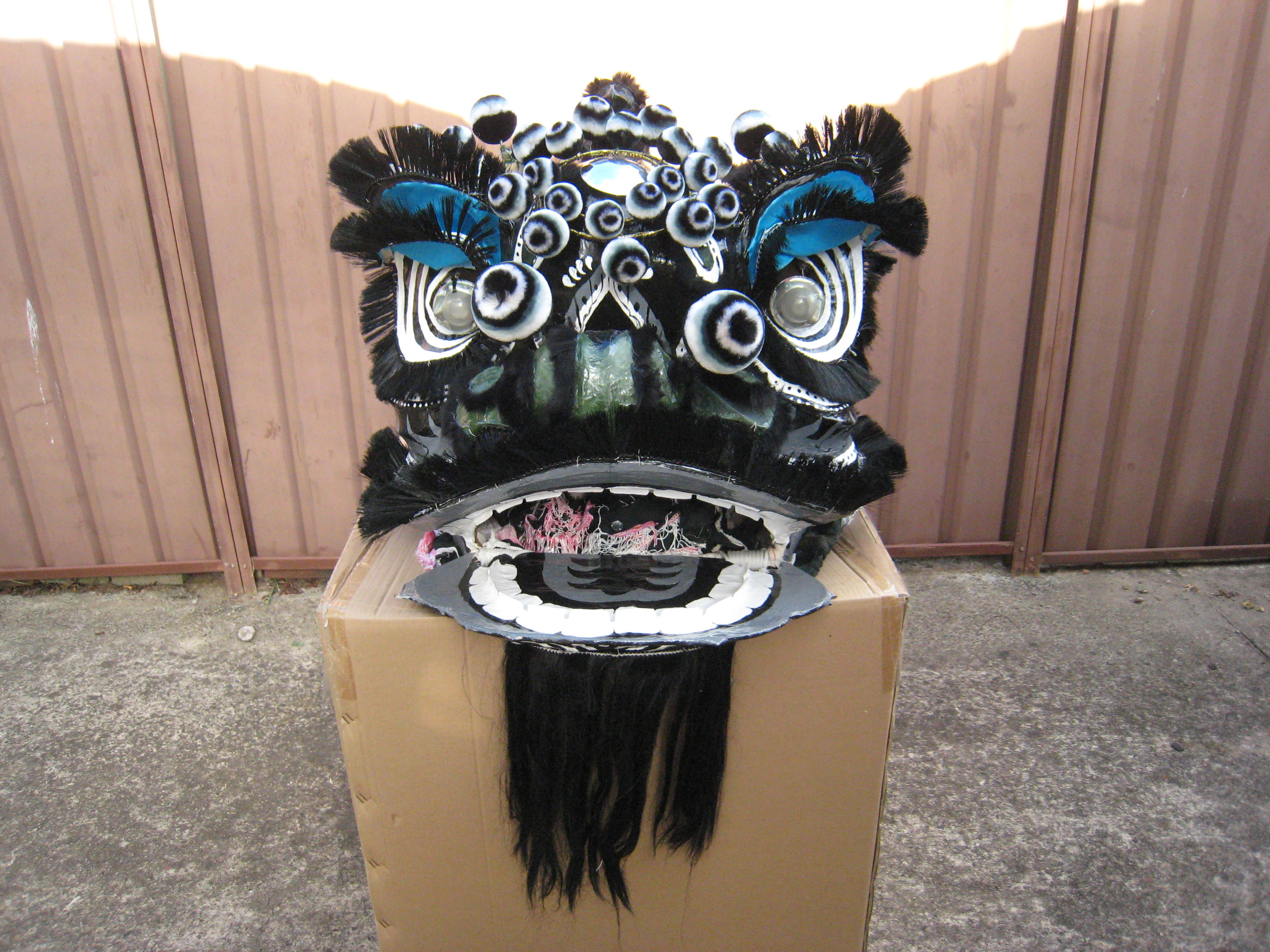 Unfortunately, I had one photo of the lion it its original state and that was part of a big class photo before one of the new years performance and a 10 second video clip of it that showed a lot of blur but you could see the incredible paint job that it had.
