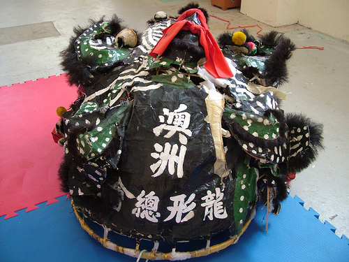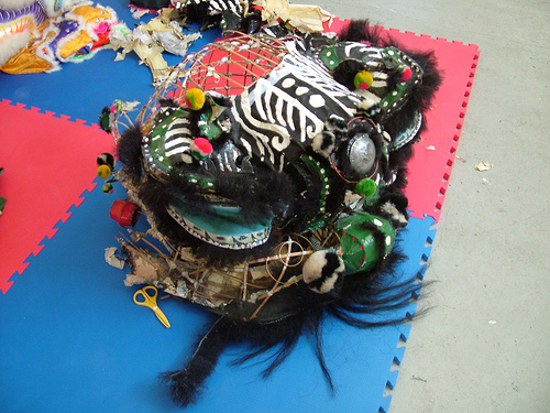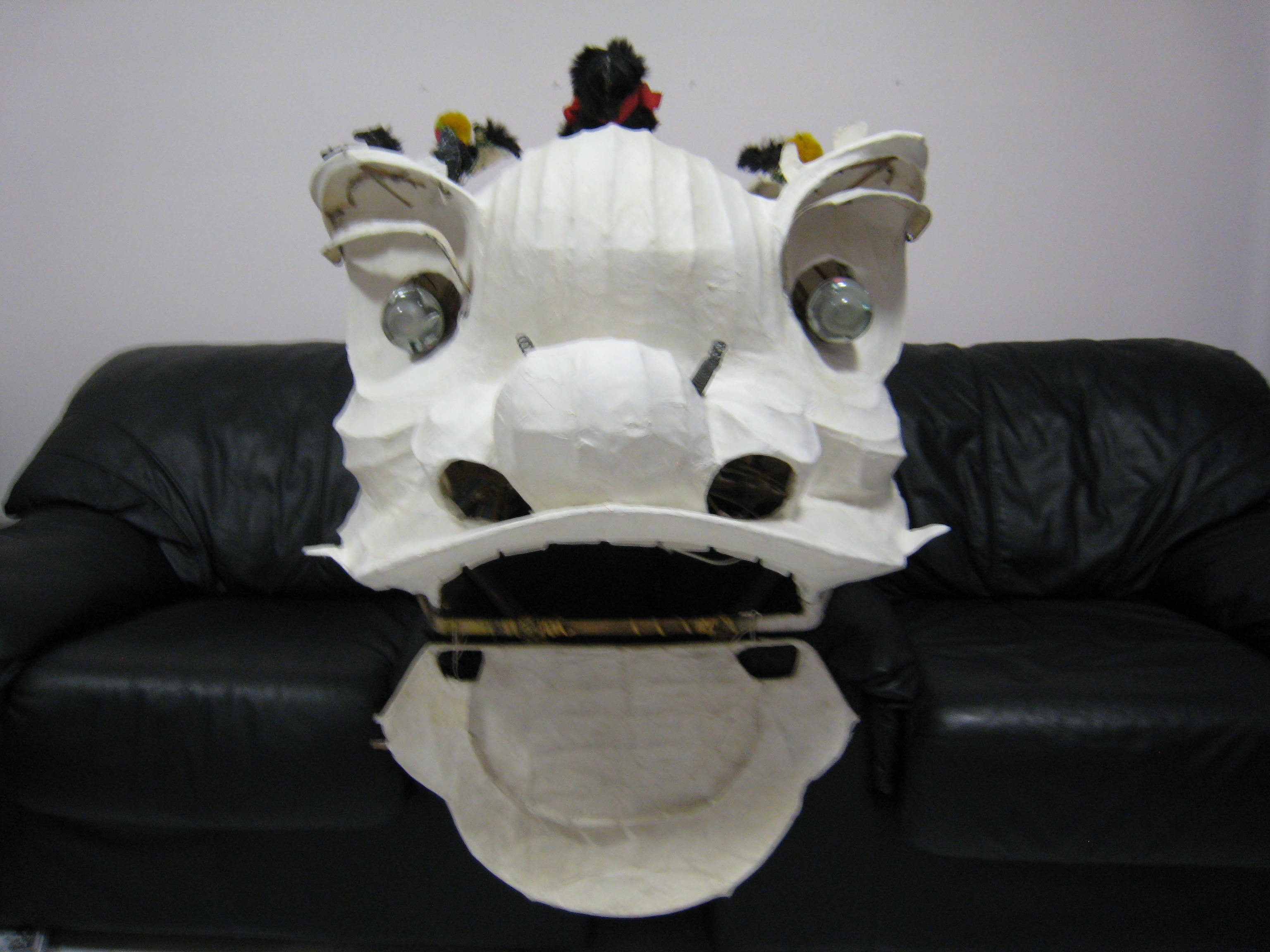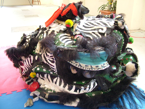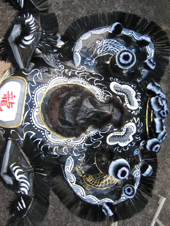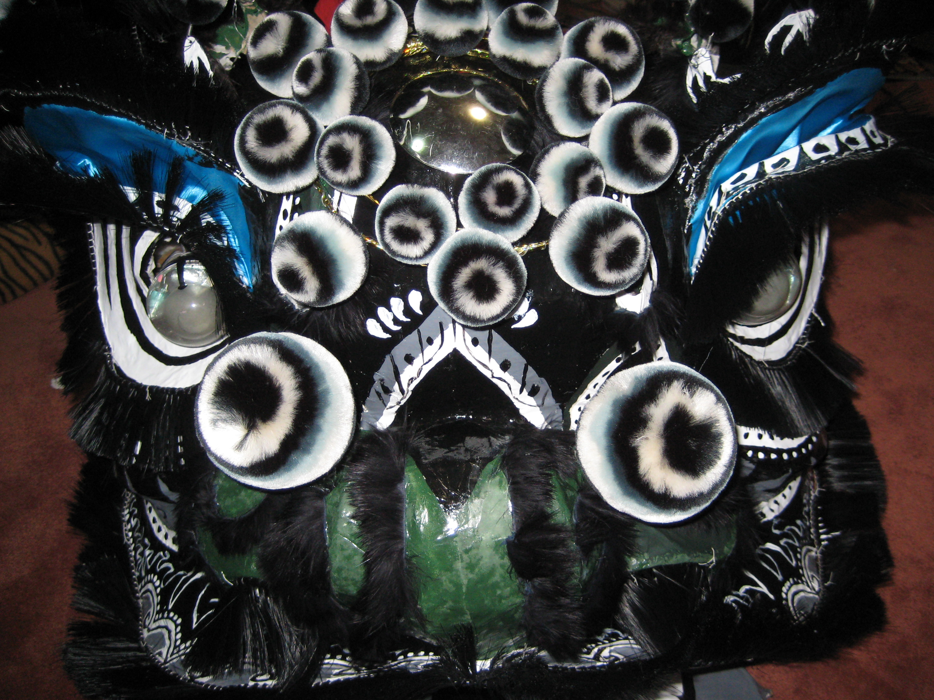 Unfortunately, I had one photo of the lion it its original state and that was part of a big class photo before one of the new years performance and a 10 second video clip of it that showed a lot of blur but you could see the incredible paint job that it had.