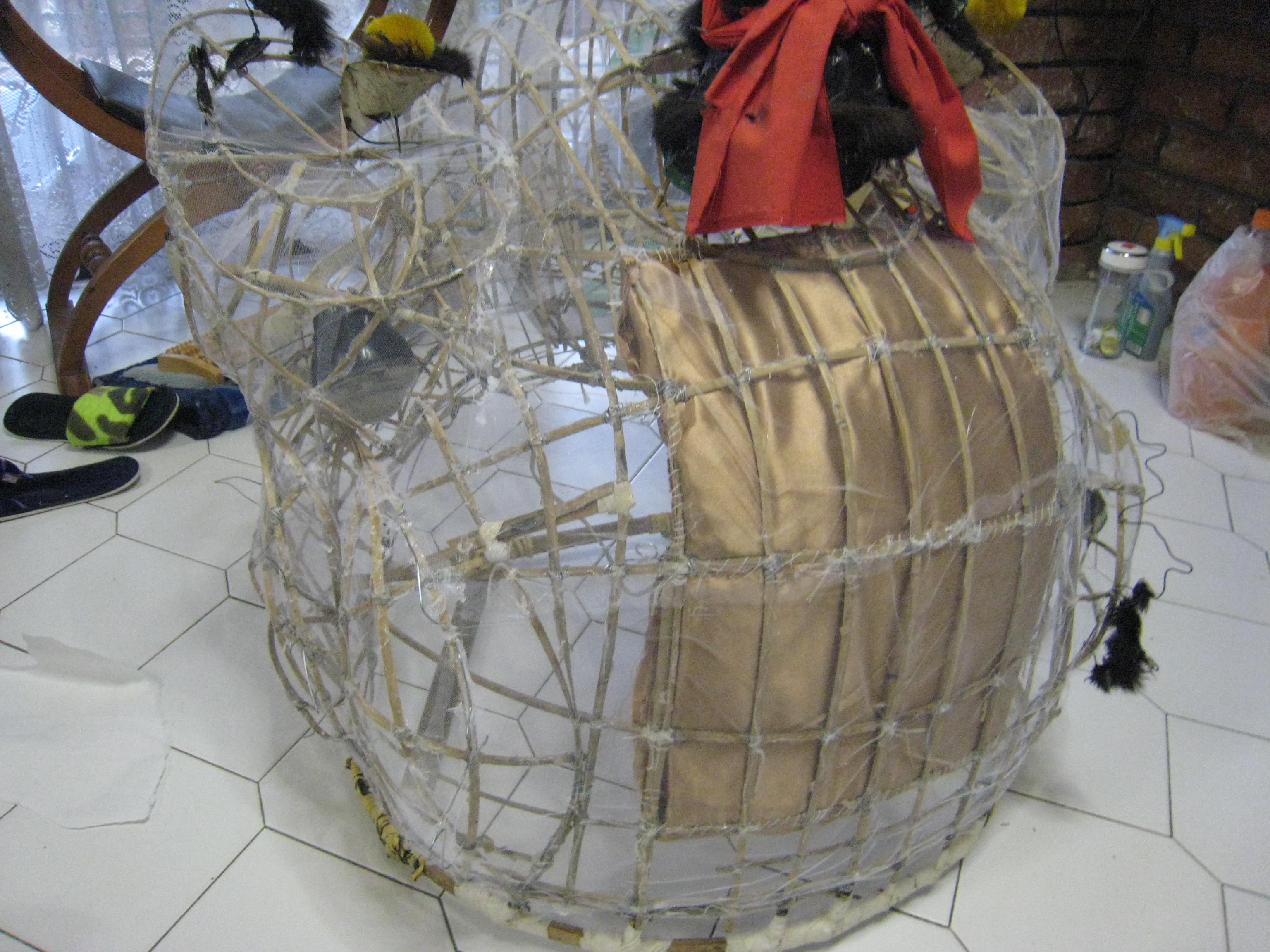 So at this stage, I sewed on the padding to the bamboo frame before continuing on with the papering.