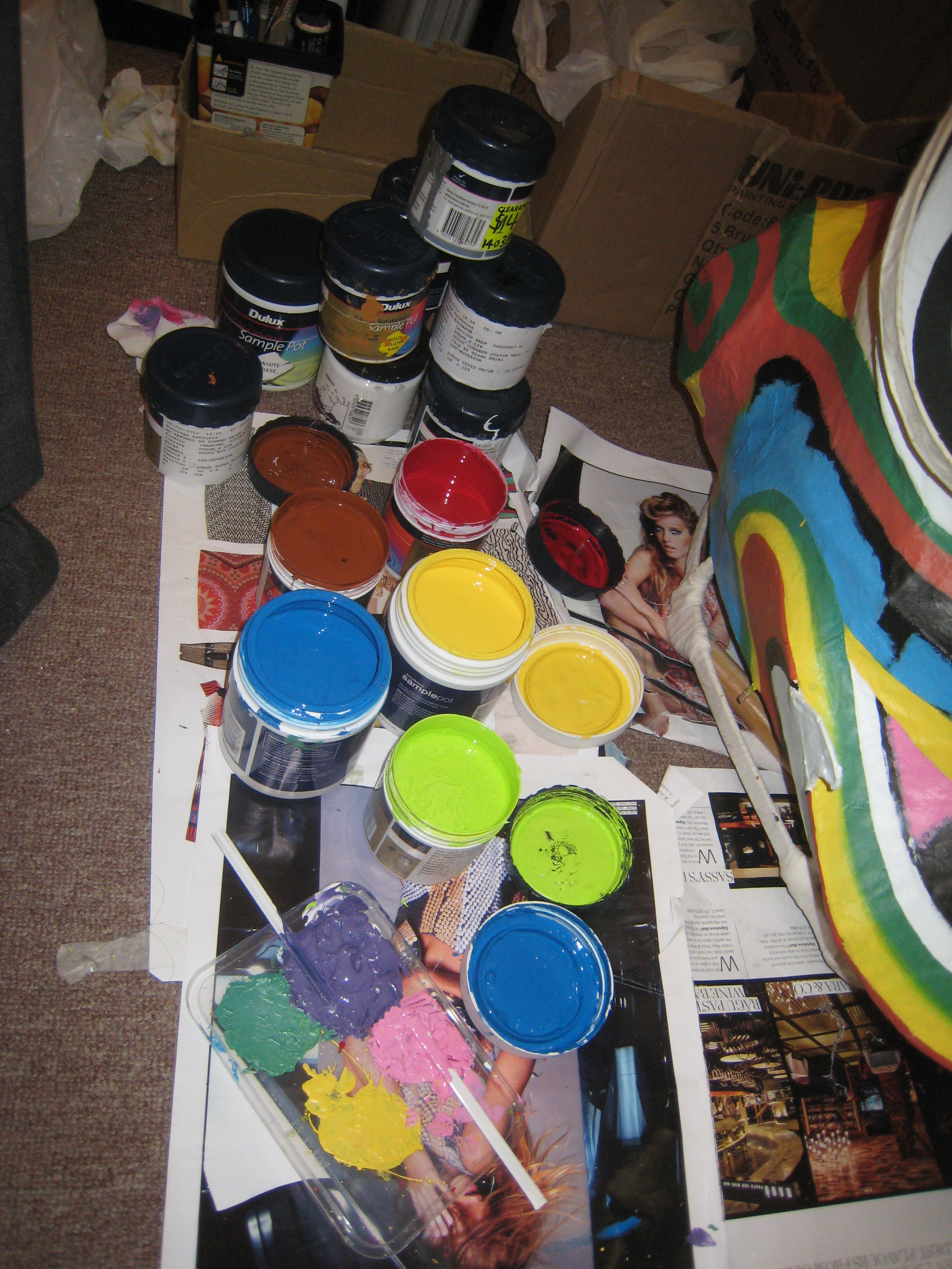 In the end, I bought about 20 pots of paint ranging between 1-2 dollars a pot and ended up ordering a sample pot of yellow for 10 dollars to complete the colour spectrum.